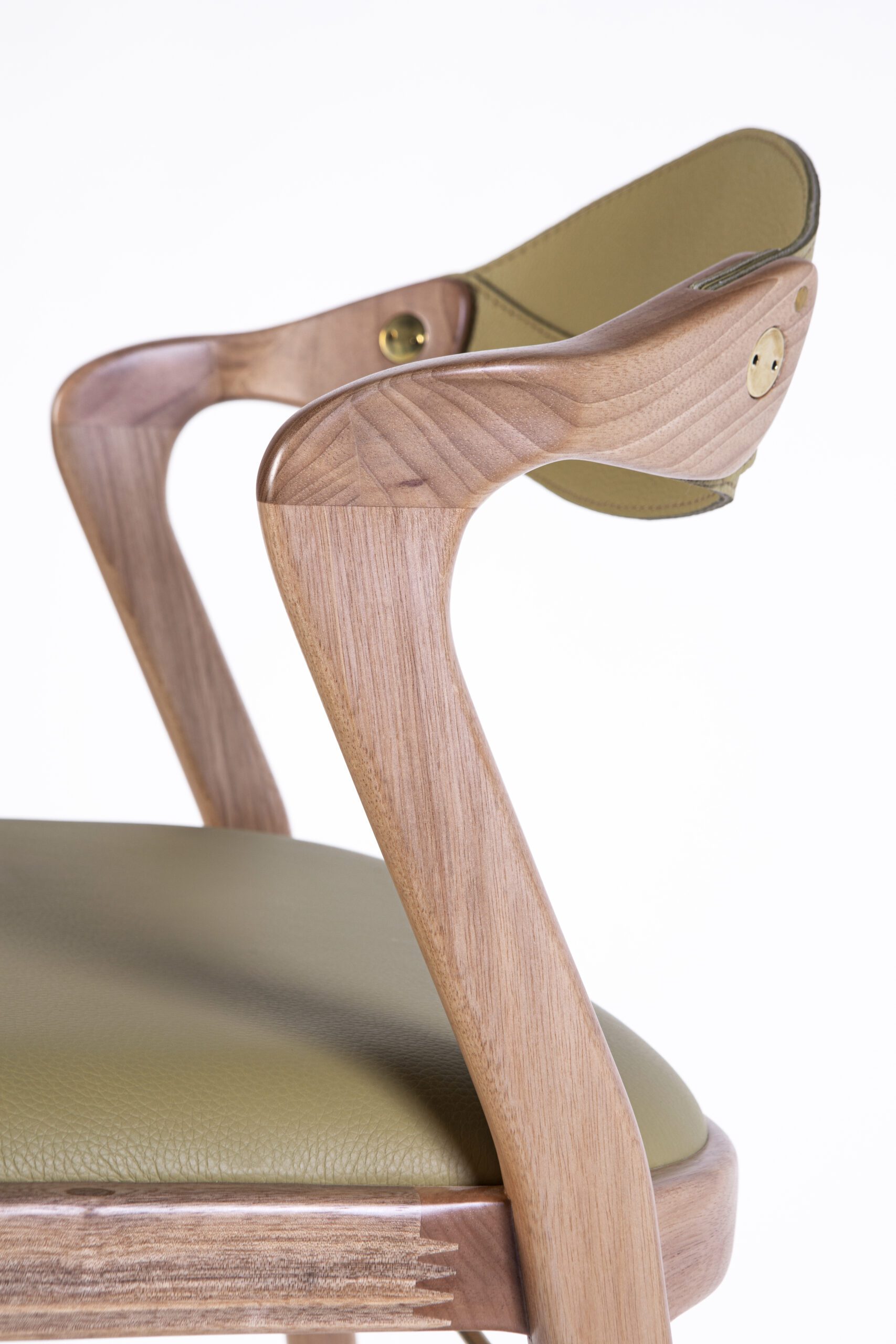The Angela Stool stands out for two spectacular features. First, its mixed-media styling brings a wholly fresh trifecta of rich wood, firm, but smooth leather, and unexpected metallic accents. It exudes a luxurious lifestyle. Second, it has an ineffable way of fitting–with great comfort and surprising stability–to all different types, sizes, and angles of its occupant. Its arms were styled after the popular Duda; just enough to rest the elbow, but not too long, to enable the sitter to swing easily in and out of the seat.